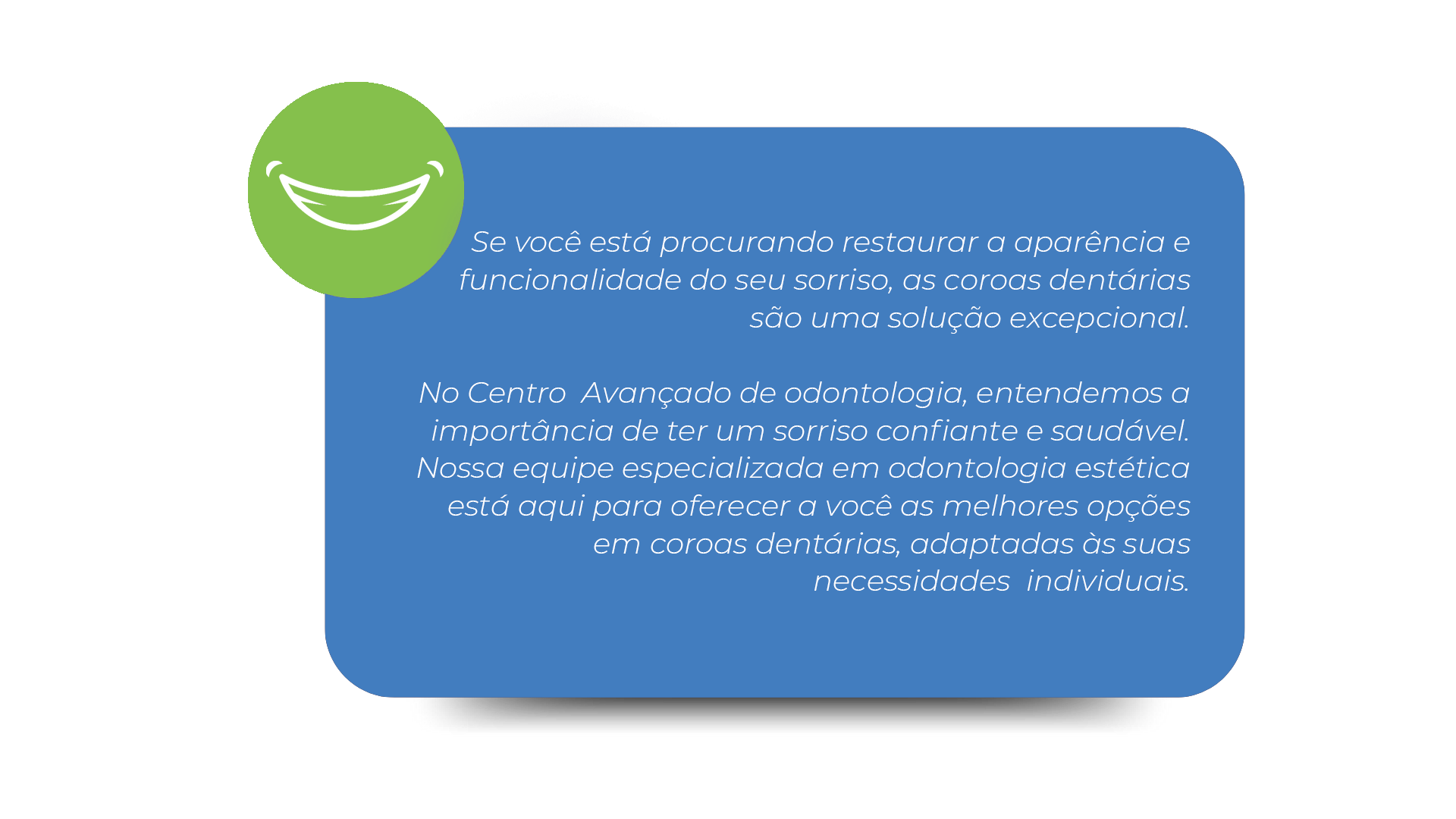 Ao melhorar a estética e a funcionalidade do sorriso, as coroas dentárias podem aumentar significativamente a autoconfiança e a autoestima do paciente.