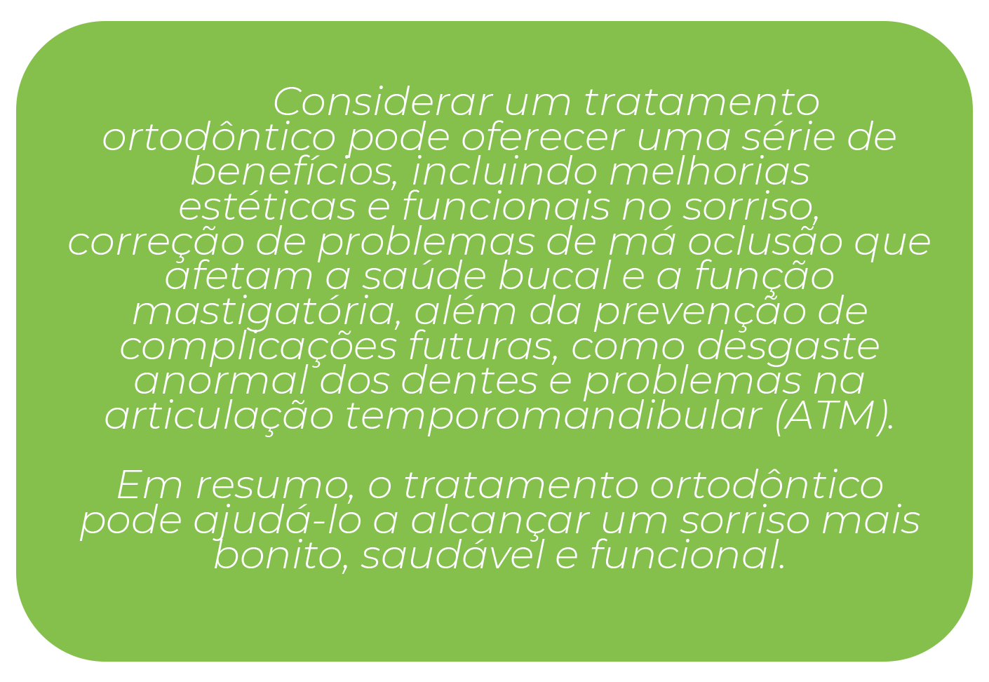 O tratamento ortodôntico não apenas melhora a saúde bucal, mas também pode ter um impacto positivo na qualidade de vida emocional e social.